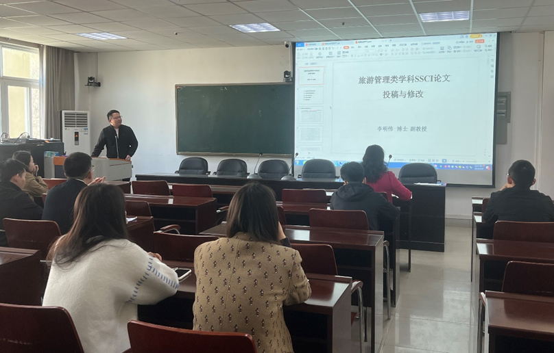 3月13日上午,beat365亚洲体育官方网站第七期“景明论坛”在经管楼401会议室成功举办。beat365亚洲体育官方网站李明伟博士作了题为“旅游管理类学科SSCI论文投稿与修改”的学术报告,beat365亚洲体育官方网站部分师生聆听了报告。