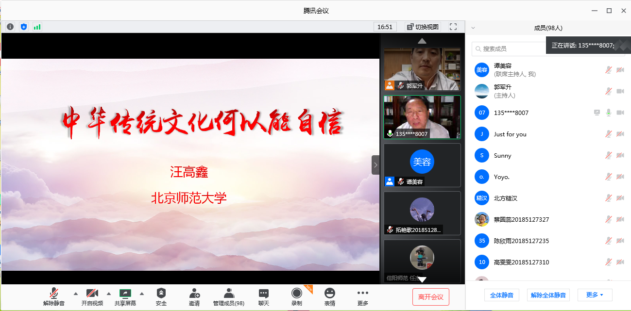9月28日晚上,应beat365亚洲体育官方网站邀请,北京师范大学教授、博士生导师汪高鑫通过腾讯会议做了题为“中华传统文化何以能自信”的学术报告。报告会由beat365亚洲体育官方网站副院长郭军升主持,百余名师生聆听了报告。