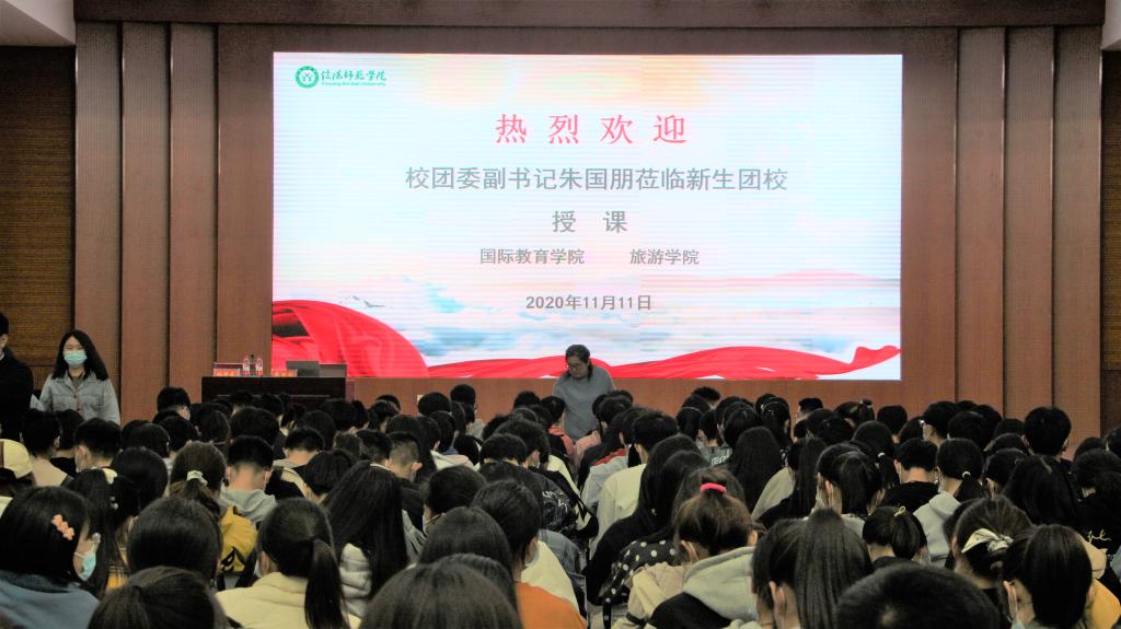为加强团史团情教育,培养担当民族复兴大任的时代新人,11月11日晚, beat365亚洲体育官方网站和国际教育学院在逸夫楼报告厅顺利举行2020级新生团校授课活动,校团委副书记朱国朋主讲,国际教育学院党委副书记姚新春主持。