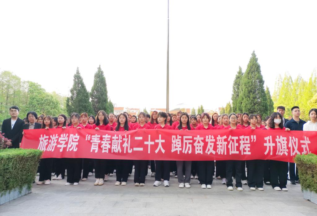 为深入学习贯彻党的二十大精神,加强学生的爱国主义教育和理想信念教育,beat365于4月17日清晨在综合楼前明德广场举行“青春献礼二十大,踔厉奋发新征程”升旗仪式。院党委副书记路璐、团委老师赵子鉴、2022级辅导员王亚文及2022级学生参加了此次活动。