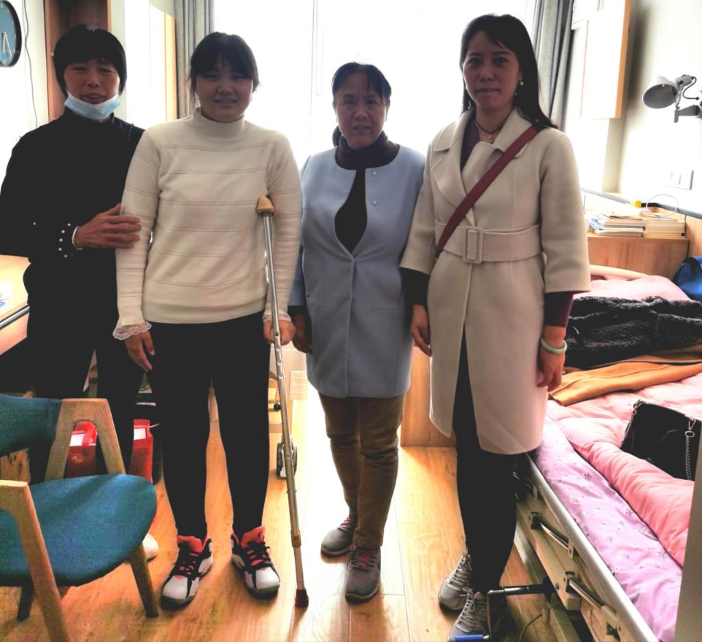 靳蕊因为寒假期间腿部骨折,上下楼不便,又担心课程问题就返回学校。学院积极与学校心理健康教育辅导中心联系,为她申请了爱心小屋。来到爱心小屋,路书记与她亲切交谈,询问身体康复情况和生活不便等问题,送来牛奶等生活用品,并代表学院给予该生一定的经济帮扶,鼓励学生放松心情,调整心态,以坚韧的意志面对生活中的困难,争取早日康复,使学生和家长感到无比温暖。由于家长不能留下照顾,兼职辅导员闫会姝给班级同学排班照顾,解决了学生和家长的后顾之忧。