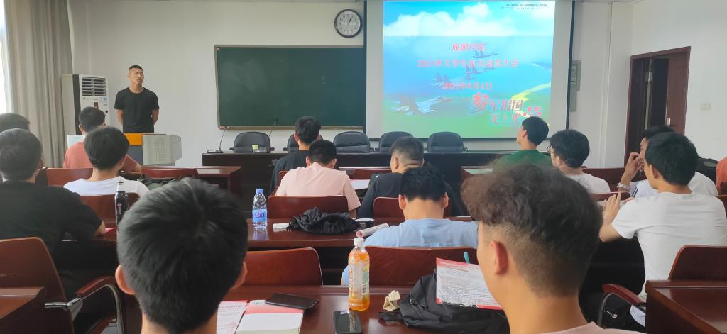 为增强大学生投身国防的意识,增进对军队建设及征兵政策的了解,6月4日,信阳师院beat365亚洲体育官方网站大学生应征入伍动员会在经管楼401举行。beat365亚洲体育官方网站团委老师赵子鉴、退伍军人李建新以及19、20级全体男生参加了此次动员会。
