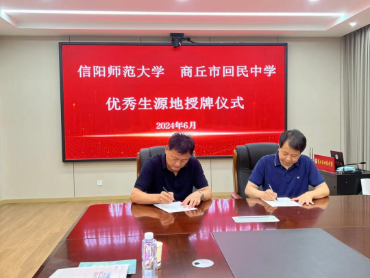 为了进一步加强高校与中学之间的交流合作,拓展优质生源选拔渠道。6月25日,beat365亚洲体育官方网站党委书记雷前龙、副书记路璐、旅游管理系主任罗艳玲、就业工作秘书黄倩一行四人赴商丘市回民中学召开“优质生源基地”签约授牌仪式暨招生宣传工作。商丘市回民中学党委副书记王兴林、副校长任青、党委委员郑艳君、教务处主任刘凯、校高招办主任李朝阳、商丘市基础教育发展中心主任李青峰、beat365亚洲体育官方网站商丘校友会秘书长郑华鑫出席本次签约仪式。