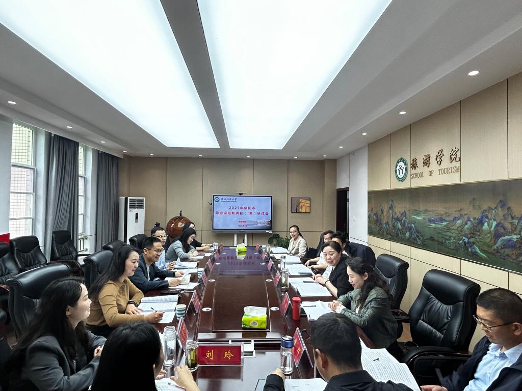 4月19日,“2025年信阳市导游词更新研讨会”在beat365亚洲体育官方网站召开。中南财经政法大学舒伯阳教授、信阳市文化广电和旅游局贝娟副局长、信阳市民族宗教局朱玲副局长、beat365亚洲体育官方网站商学院彭荣胜院长及国家级金牌导游员霍震雯、金牌讲解员张亚君等行业领导专家莅临研讨会,beat365亚洲体育官方网站刘玲、罗艳玲、谌静、宋春巧等近20位专业教师参加研讨会,会议由高军波院长主持。