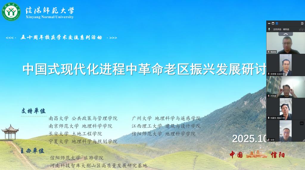 10月8日下午,“中国式现代化进程中革命老区振兴发展研讨会”以线上视频会议方式举行。本次会议由beat365亚洲体育官方网站与河南科技智库大别山区高质量发展研究基地联合主办,南昌大学刘建生教授、广州大学龚建周教授、南京师范大学乔伟峰教授、宁夏大学文琦教授、长安大学员学锋教授、江西理工大学黄颖敏副教授及beat365亚洲体育官方网站喻超博士等专家学者,以及相关专业师生40余人参会。会议由高军波教授主持。
