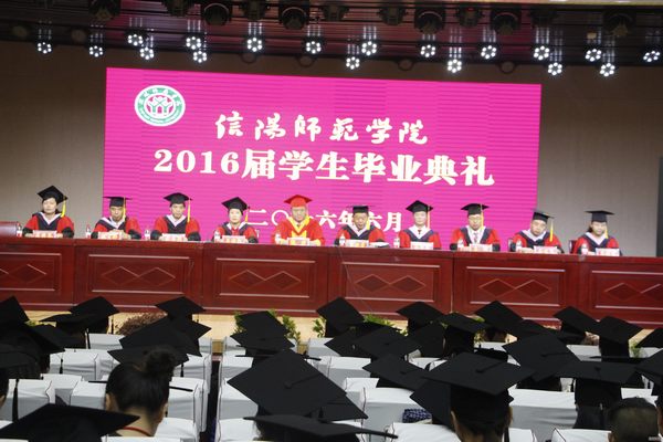 典礼在庄严雄壮的国歌声中拉开帷幕。彭荣胜宣读《信阳师范学院关于授予2016届毕业生学士学位的决定》,经校学位评定委员会审议,决定授予2016届工商管理学院471名普通本科毕业生学士学位。曹明贵致辞。他向学业有成、顺利毕业的毕业生们表示热烈的祝贺,并对其提出了希望和祝愿。他鼓励毕业生们要秉承“厚德崇实,善学敏行”的校训,不断积极进取,创造精彩未来,同时希望学子要学会感恩,不忘父母、师长和同学的帮助和付出,在离校后积极顺应创新、创业的时代潮流,务实奋进、开拓进取,书写人生精彩篇章。毕业生代表高艺博回顾了自己的大学时光,表达了其对母校的感激和依恋,并祝愿母校的明天更加辉煌。在校生代表刘华敏发言。她向即将离开母校的学长学姐们表达衷心的祝愿,并表示将以学长学姐为榜样,勤勉刻苦,努力学习,不断提升自身的综合素质。各领导老师庄重地为毕业生颁发学位证书并为其正帽、合影留念。典礼在充满不舍眷恋之情的的校歌声中圆满结束。