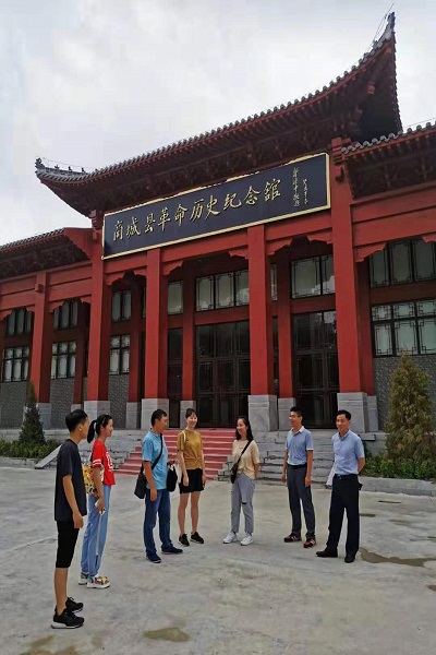 为深入学习贯彻习近平新时代中国特色社会主义思想和党的十九大精神,引领教育广大青年研究生在切实感受新中国成立70周年取得的巨大成就中坚定“四个自信”,激发研究生的报国情怀和奋斗精神,使其在实现中国梦的新长征中勇于担当时代重任。8月10日至12日,信阳师范学院beat365亚洲体育官方网站2018级全体研究生在指导教师的带领下,来到了河南省第一个县级苏维埃政权、河南省第一块革命根据地豫东南革命根据地——商城县,开展为期三天的研究生“三下乡”社会实践暨“我是中国研究生,我为祖国点赞”主题活动。