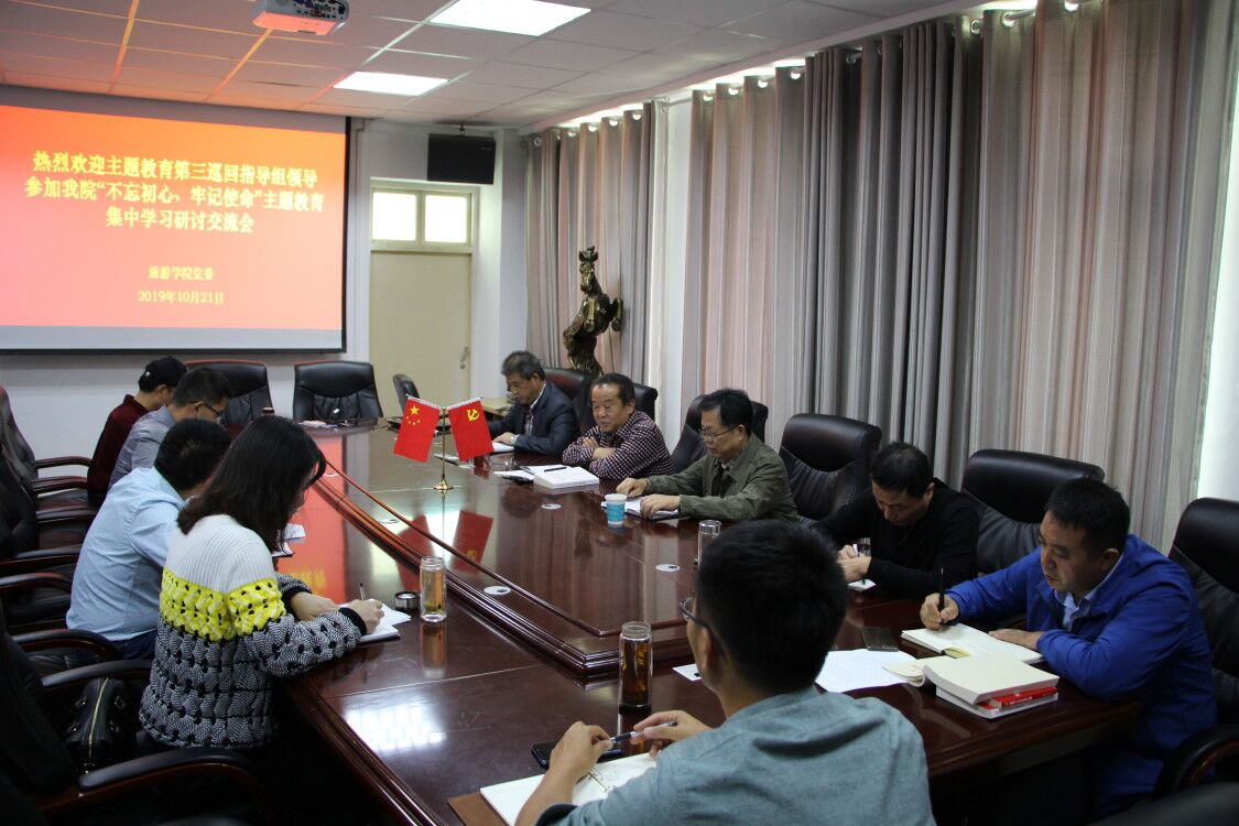 10月21日,校“不忘初心,牢记使命”主题教育第三巡回指导组组长、正处级组织员刘根货,成员、组织部副部长姜兴周参加beat365集中学习交流。beat365党委书记曹明贵、副院长潘国兵、党委副书记张晓峰和党支部书记参加了会议。会议由曹明贵主持。