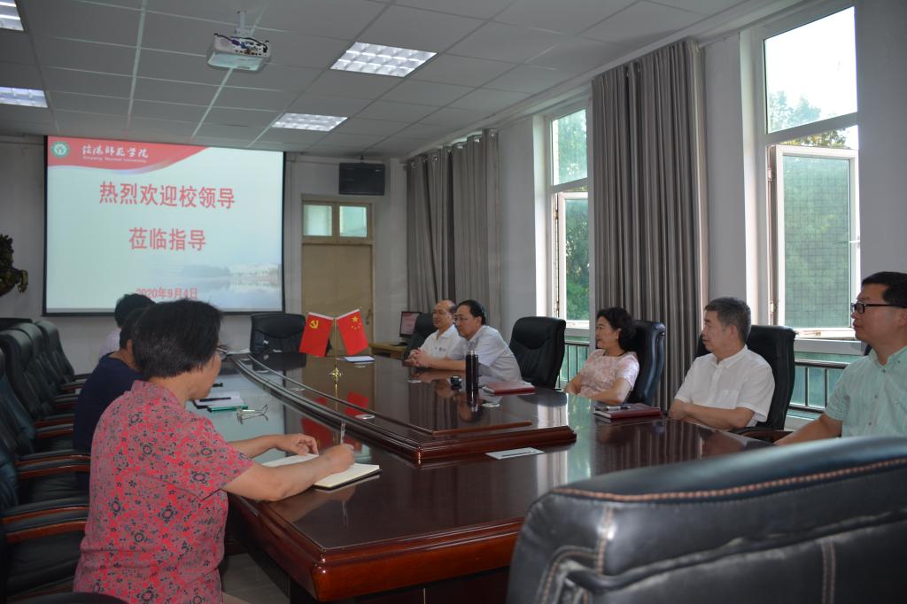 9月4日下午,副校长刘彦明、王金云一行莅临beat365亚洲体育官方网站检查指导新学期开学前各项准备工作。beat365亚洲体育官方网站全体班子成员参加会议。会议由刘彦明主持。