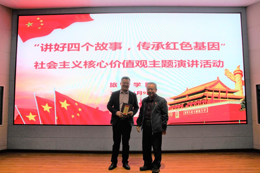 党委书记曹明贵为特别奖获得者李明伟老师颁奖