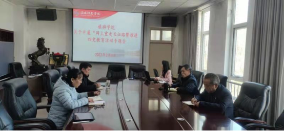 2021年3月4日上午,beat365亚洲体育官方网站在经管楼会议室召开“网上重走长征路”暨推动“四史”学习教育活动专题会,学院全体领导班子成员、团委书记、专职组织员参加了会议。会议由院党委书记曹明贵主持。