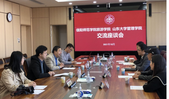 山东大学管理学院党委书记吉小青、实验室主任杨海军、文化和旅游学系主任孙晋坤等出席了座谈会。吉小青书记对高军波院长一行的到来表示了热烈欢迎,并介绍了山东大学及管理学院的发展历史、专业机构设置、学科建设及科研等情况。高军波院长介绍了信阳师范学院及beat365亚洲体育官方网站的发展现状、历史沿革、组织结构设置及今后的发展思路,并希望在人才培养、师资建设、科学研究等方面与山东大学管理学院保持长期交流。双方围绕旅游管理虚拟仿真中心与教学、科研、社会服务,以及虚拟仿真中心建设、管理和维护中存在的主要问题进行了深入探讨和交流。随后,考察组参观了山东大学管理学院的“管理学科国家级实验教学示范中心”、“管理学科国家级虚拟仿真实验教学中心”,重点考察了“山东大学TBL旅游行为实验室”的建设及运营管理,并就专业实验室在教学、科研、社会服务等方面的应用进行了深入交流和探讨。