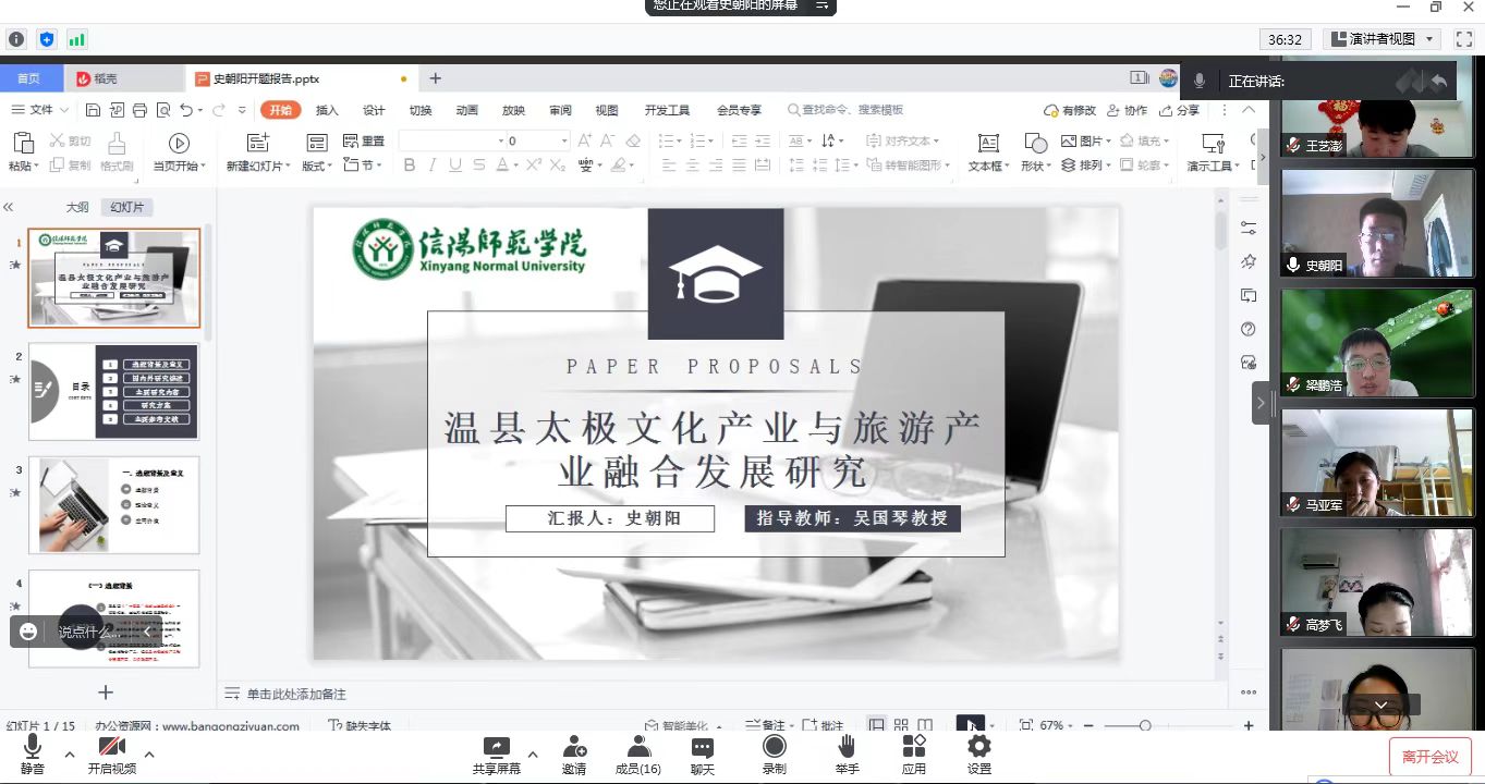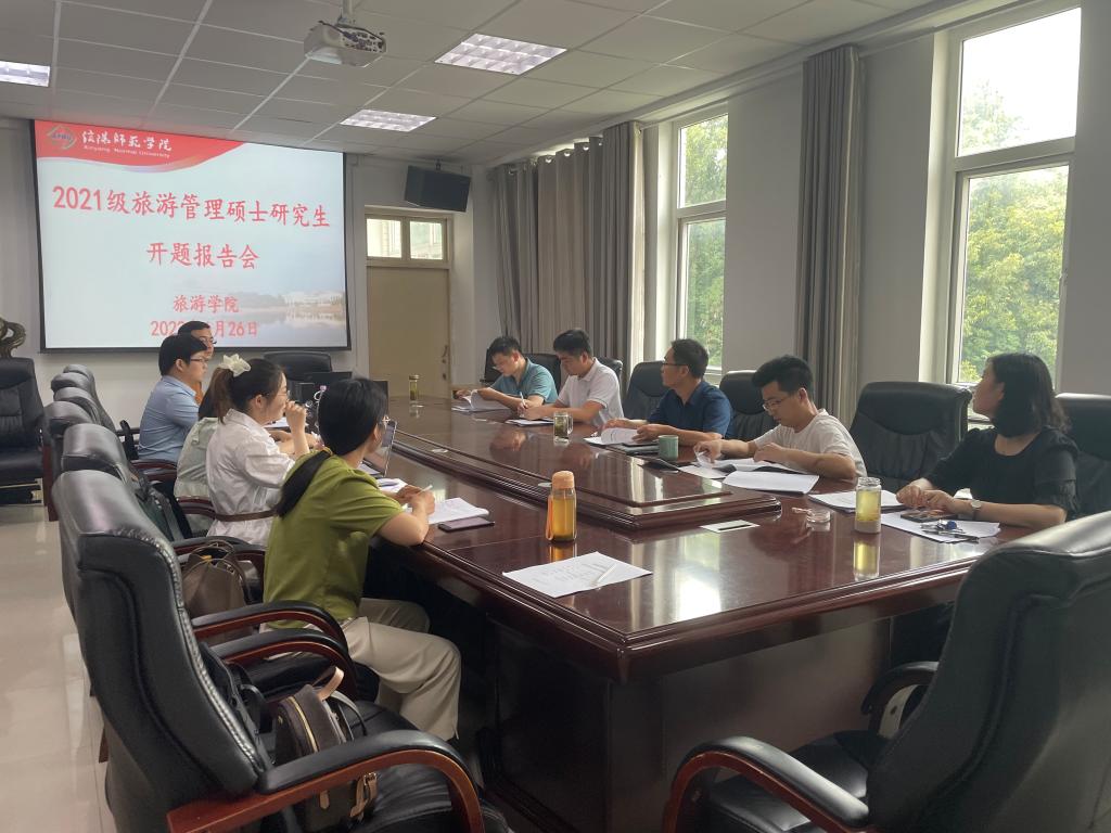 6月26日下午,beat365亚洲体育官方网站2021级旅游管理硕士研究生毕业论文开题报告会分3组在经管楼401、404和线上腾讯会议同时举行。彭荣胜、高军波和吴国琴教授分别任3组评审小组组长并主持报告会。