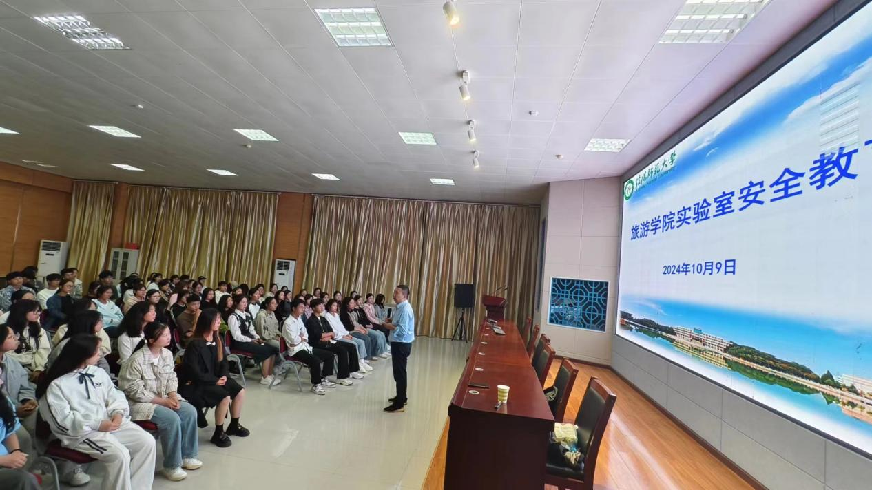 为落实“河南省高校第四届实验室安全文化宣传月”活动,10月9日晚,beat365亚洲体育官方网站实验室主任李友亮副教授在综合楼601旅游虚拟仿真实训室,围绕实验室安全中的“知易行难”的问题,结合beat365实验室实际,为2024级新生开展实验室安全教育讲座。