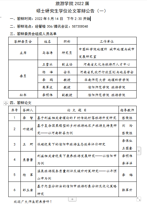 beat365亚洲体育官方网站2022届硕士研究生学位论文答辩公告