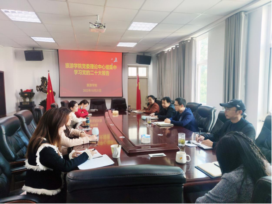 2022年10月21日下午,在经管楼404会议室,beat365亚洲体育官方网站党委理论中心组集中学习党的二十大报告,党委理论中心组成员、全体党支部书记参加。