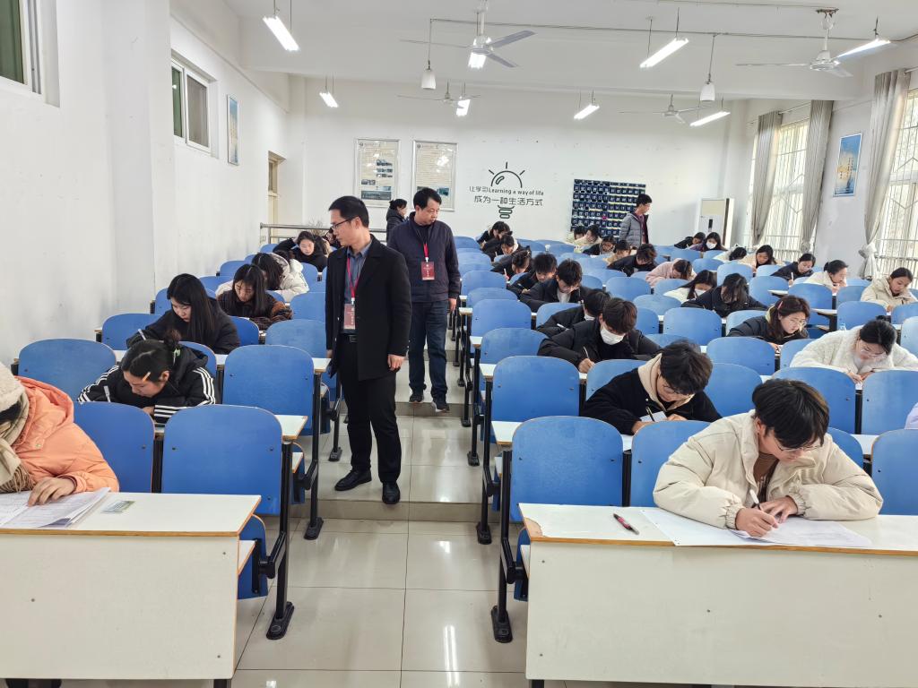 1月3日,beat365院长高军波及其他领导班子成员深入考场进行巡视,了解考风考纪,检查指导期末考试工作。