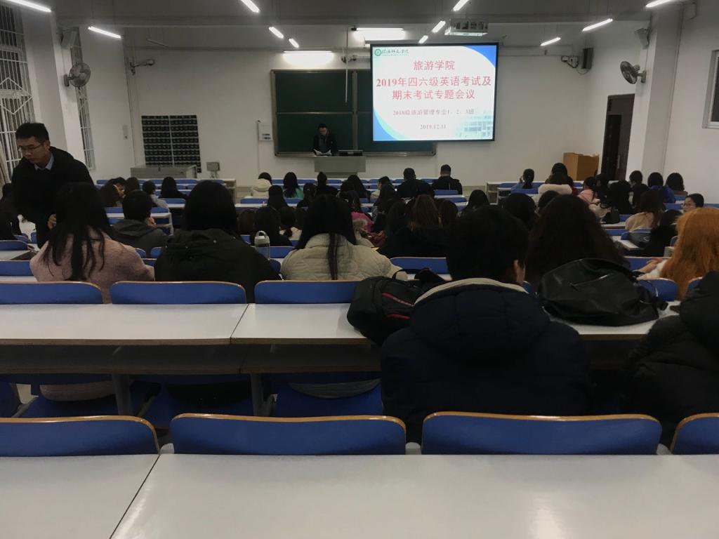 为了使同学们顺利参加12月14日四六级英语考试以及即将到来的期末考试。12月11日晚,beat365亚洲体育官方网站于社科楼213教室召开2019年四六级英语考试及期末考试专题会议。beat365亚洲体育官方网站18级旅游管理专业辅导员李明伟、赵阳阳、郑征及18级一班、二班、三班学生参加此次专题会。
