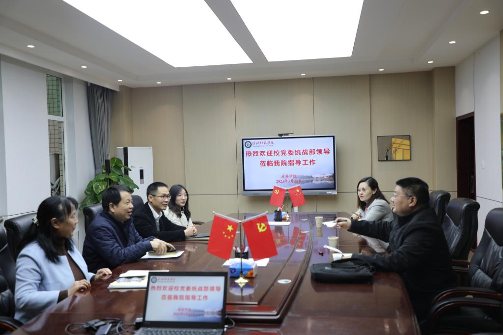3月23日下午,校党委委员、统战部部长曾伏虎来beat365亚洲体育官方网站调研指导工作,并与beat365亚洲体育官方网站领导老师和学生代表进行现场交流。
