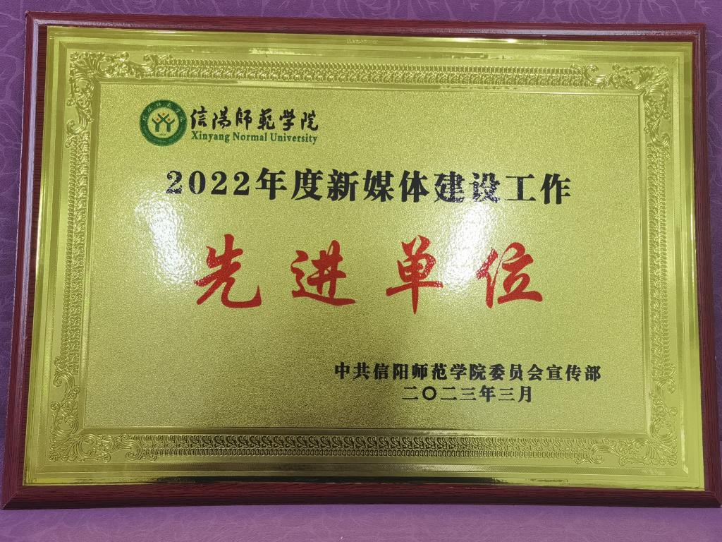 3月30日,beat365亚洲体育官方网站在信阳师范学院2022年度新媒体建设工作先进单位评选活动中,荣获信阳师范学院2022年度“新媒体建设工作先进单位”。